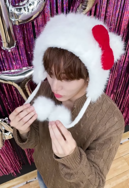 動画のカズタは真っ白でふわふわの帽子をかぶってはしゃぐ姿を披露した。