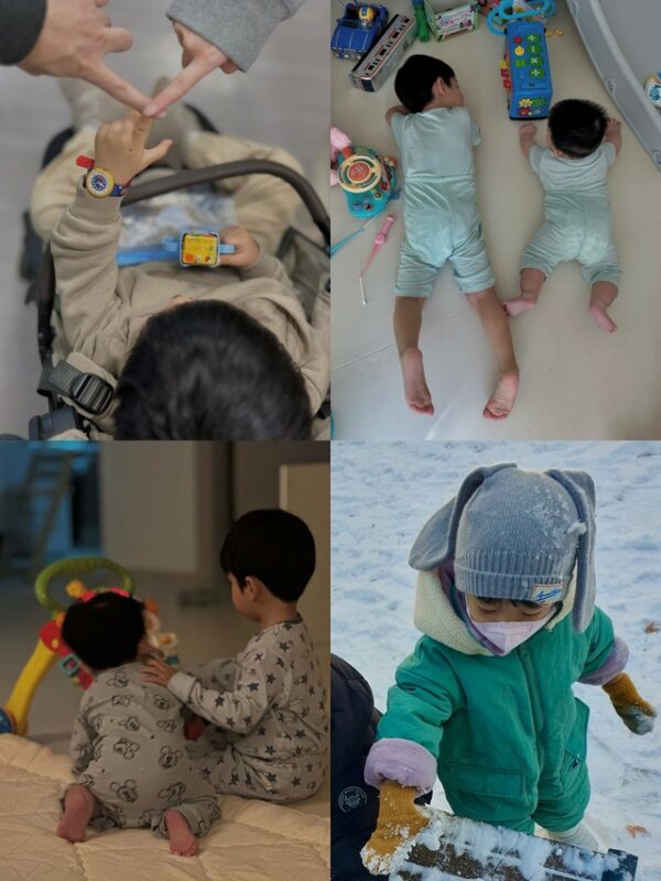 最初の写真にはナ・ヘミとエリック、長男が指先を合わせ、家族として心を通わせているような姿が写されている。別の写真では、ナ・ヘミが昨年出産した次男を抱き、鏡越しに自撮りをする様子や、2人の息子がお揃いの水色のパジャマを着て仲良くうつ伏せになっている姿が微笑ましい雰囲気を醸し出している。