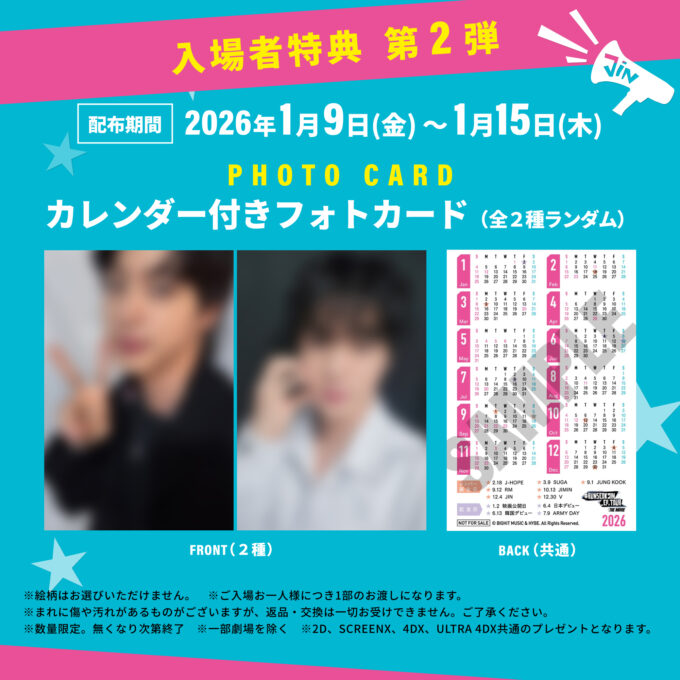 入場者特典第2弾の詳細公開!2026年のスタートに嬉しい「カレンダー付きフォトカード(全2種ランダム)」