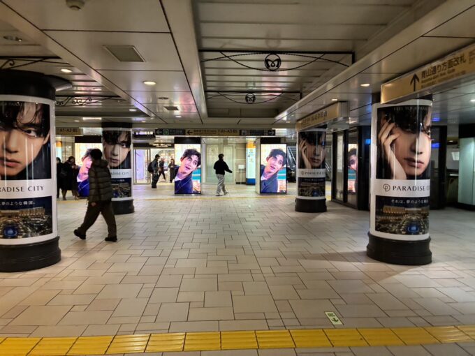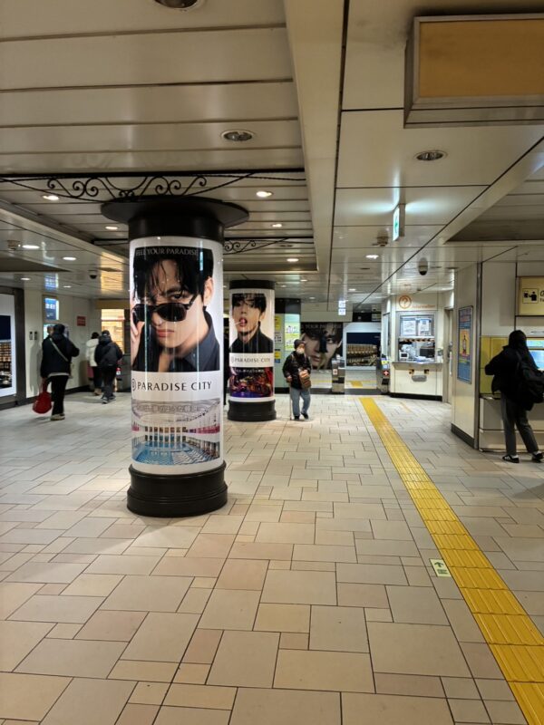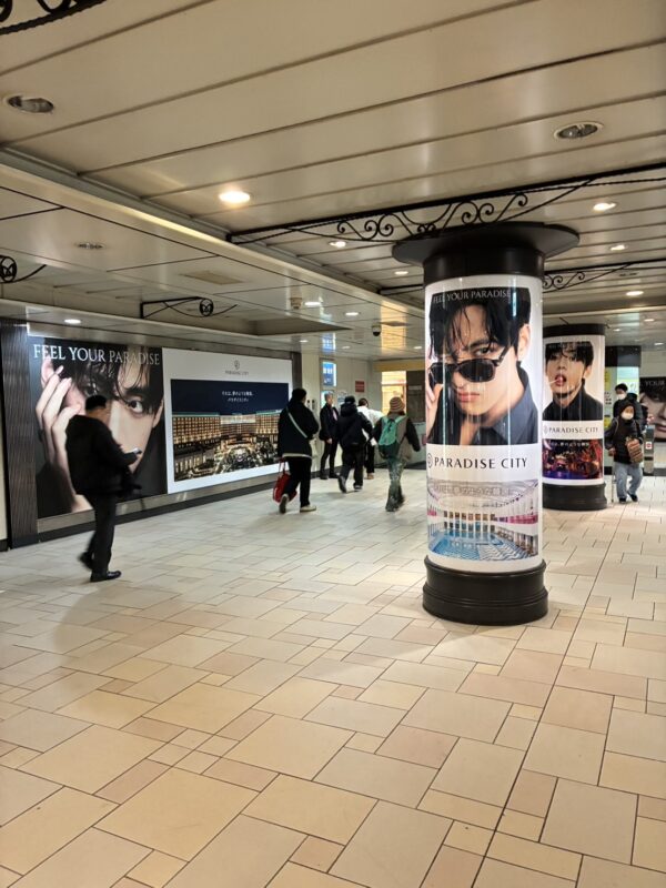 北東アジア初の統合型エンターテインメントリゾート「パラダイスシティ」の新アンバサダーに就任した「BTS」Vの広告が、東京・表参道駅構内に登場し、通行人の視線を集めている。