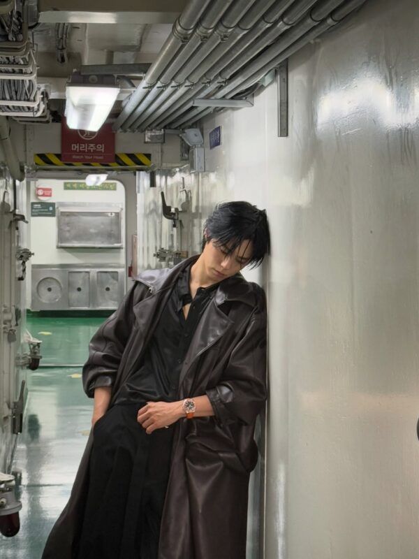 ブラックレザーのジャケットやニットを着こなしたパク・ボゴムは、洗練されたビジュアルと大人の色気で視線を集めた。