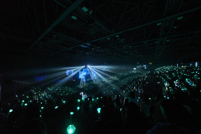 その後、プレゼント当選者の発表などもあり、会場の空気がしっかり温まったところで、新曲「Flawless」を“宇宙初解禁”する。<飾らないで そのままで 美しい>という耳に残るキャッチーなサビのフレーズが象徴するように、“完璧じゃなくても、美しい”というメッセージを込めた、聴く人を力強く肯定してくれるポップな楽曲。歌うMINHOの表情にも笑顔もこぼれ、シャヲルも初めて聴くにもかかわらず体を揺らして乗っている。歌い終えるとMINHOは「久しぶりの日本オリジナル曲だったから、今、この場所で、地球じゃなくて、宇宙の中で、初めて皆さんに聴いてもらいました」とニコニコしながらコメント。客席に向かって「良かったですか?」と尋ねると、シャヲルからも「もちろん!」と言いたげな大きな歓声が返ってきた。