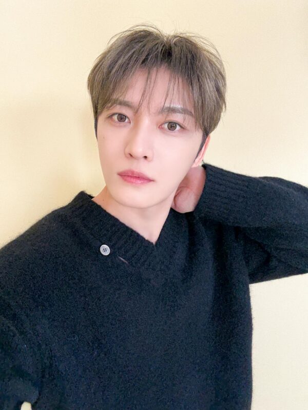 写真には、ネイビーのニットを着たジェジュンの姿が写っている。