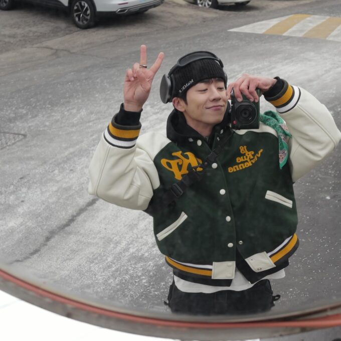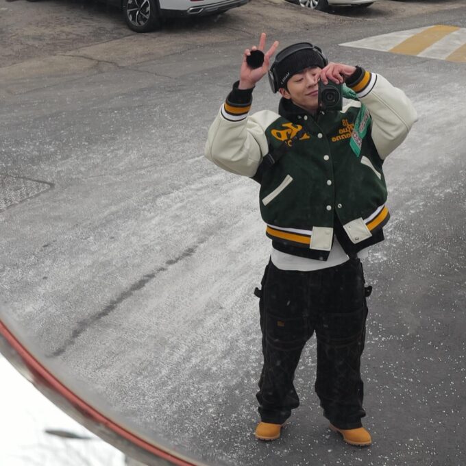 写真には、スタジアムジャンパーを着たチェ・ジョンヒョプの姿が収められている。