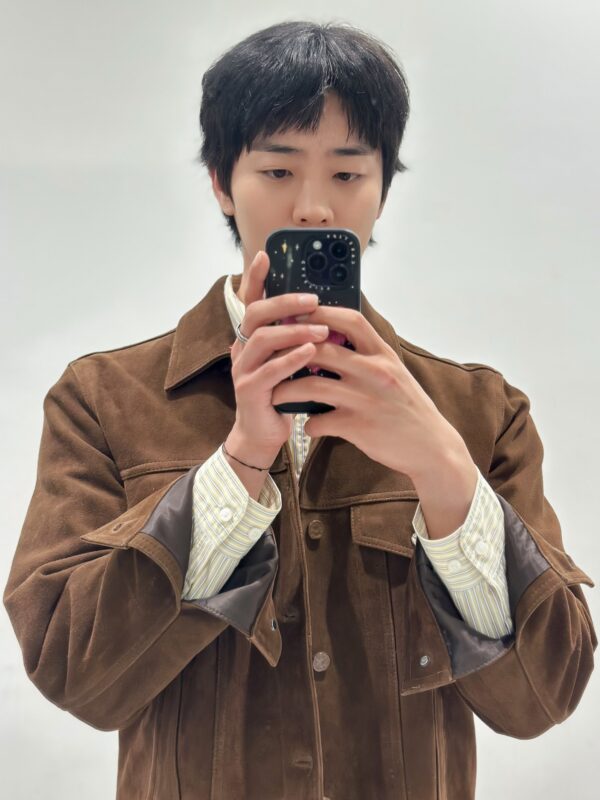 写真には、明るいブラウンのブルゾンを着たチェ・ジョンヒョプの姿が収められている。