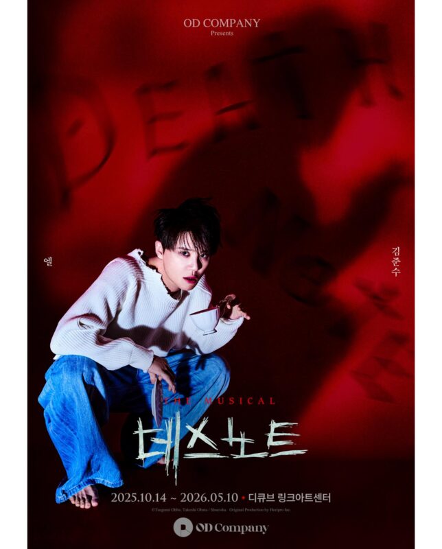 ジュンスは、正体を隠したまま天才的な推理力で事件の本質を見抜く世界最高の名探偵L(エル)役で再び舞台に上がる。「デスノート」の歴史を共にしてきた彼は、社会と人間を観察する鋭い視線と彼ならではの歌声を武器に、まるで漫画から飛び出してきたかのようなLを完璧に体現した。その結果、「キム・ジュンスのLは没入させる力が格別だ」という好評とともに、「デスノート」を象徴する俳優としての存在感を確かなものにした。