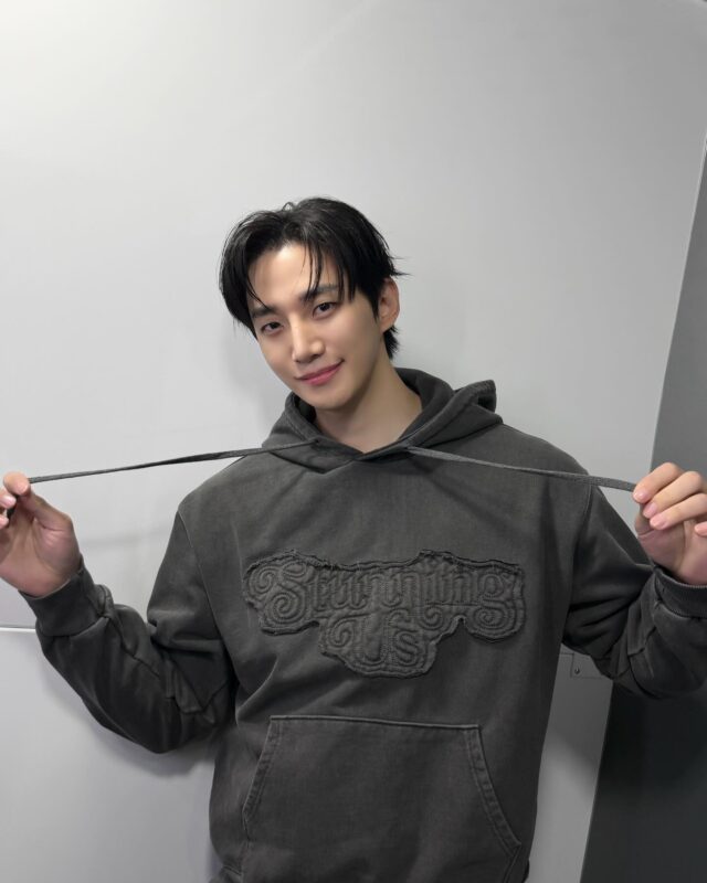 またジュノは、片手で何かを受けるようなポーズや、グレーのフード付きトレーナー姿で肩を抱くようなポーズも公開してファンをときめかせている。
