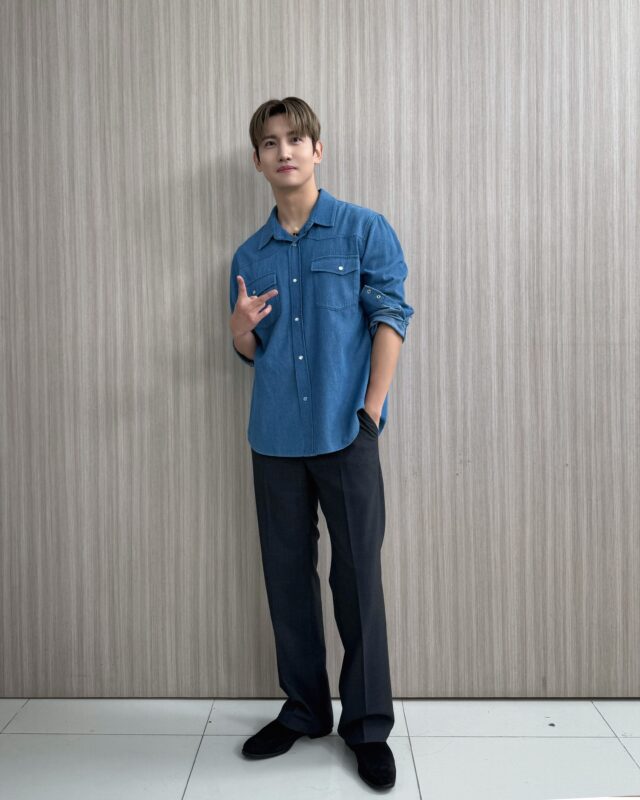 公開された写真には、ブルーのデニムシャツを着たチャンミンの姿が収められている。