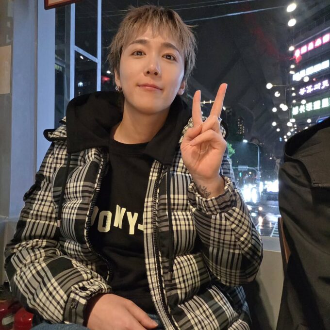 写真には、チェックのジャンパーを着たホンギの姿が収められている。
