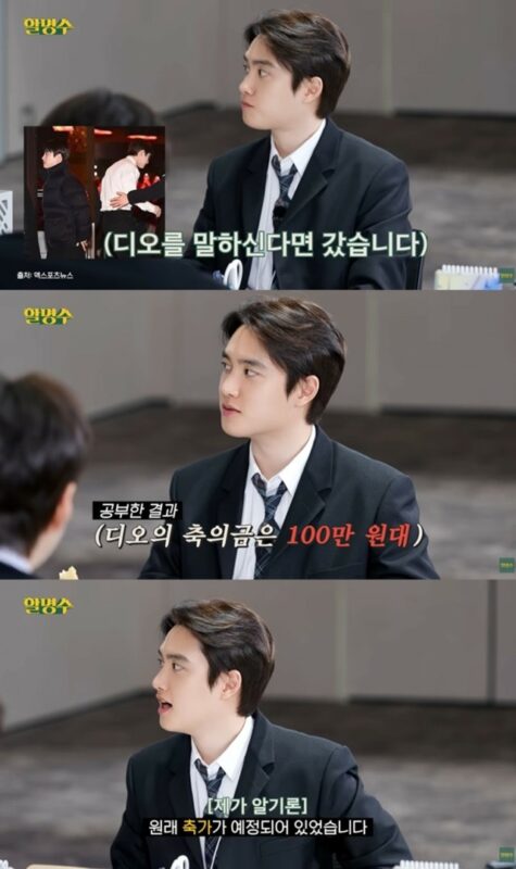 タレントのパク・ミョンスは、D.O.に「キム・ウビンの結婚式に行ったのか?」と尋ね、好奇心をあらわにした。続いて、「ご祝儀はいくらにしたのか?」と、いたずらっぽく質問を投げかけた。