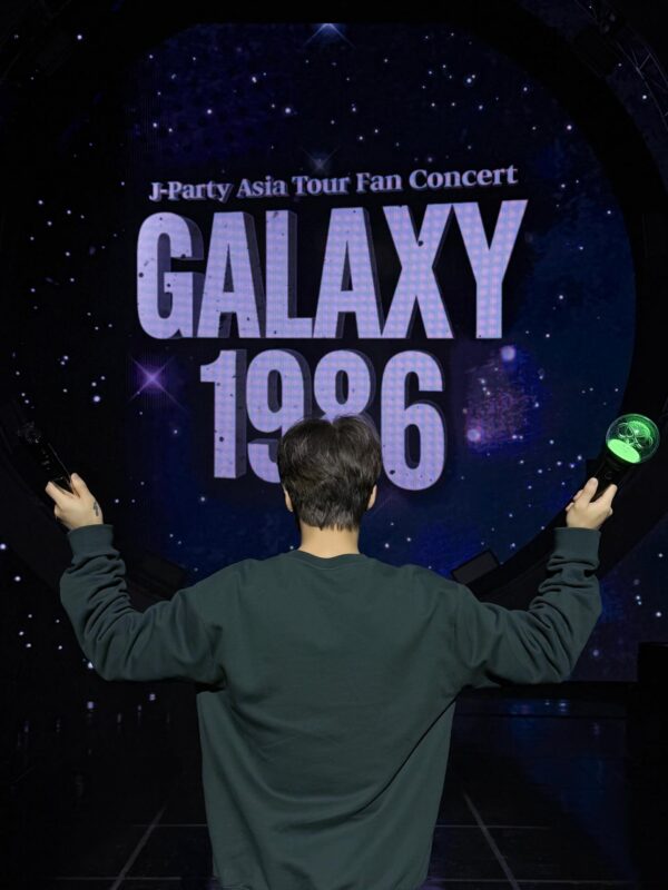 写真には、「GALAXY 1986」というフレーズの前で、マイクとペンライトを手に立つジェジュンの後ろ姿が収められている。