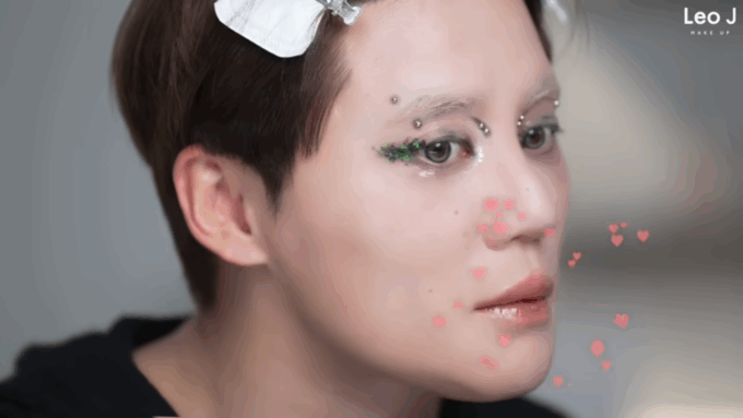 ジュンスはLeoJの手によって「ビートルジュース」をイメージしたアイドルメイクを施され、デビューしたばかりのアイドルにも劣らないビジュアルで見る人の感嘆を誘った。
