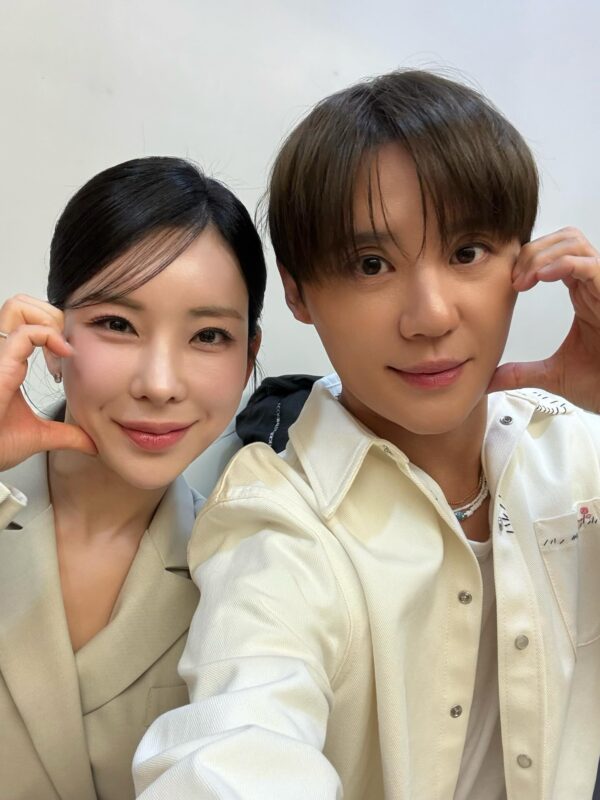 写真には、揃ってほっぺハートのポーズを取るジュンスとチョン・ソナの姿が収められている。