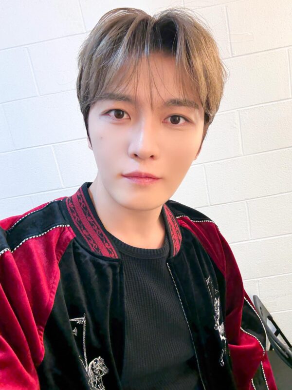 公開された写真には、ブラックとバーガンディのスタジャンを着たジェジュンの姿が収められている。