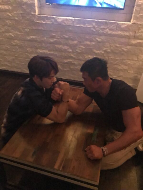 公開された写真には、腕相撲をしているジェジュンの姿が収められている。