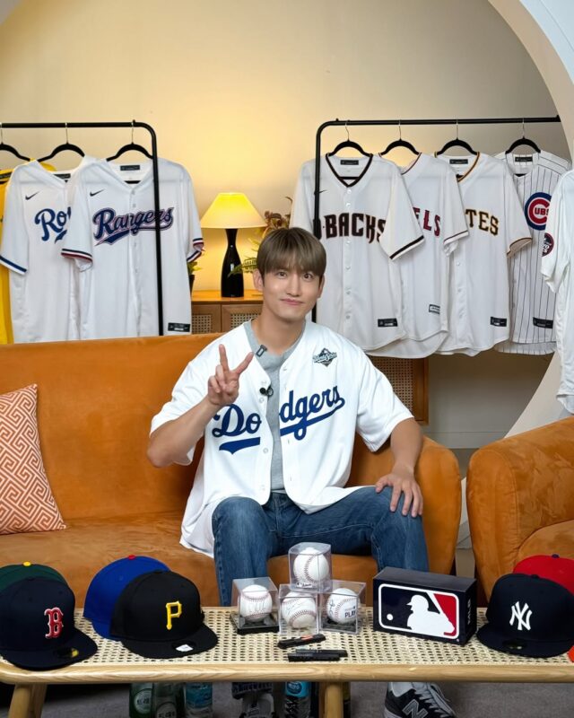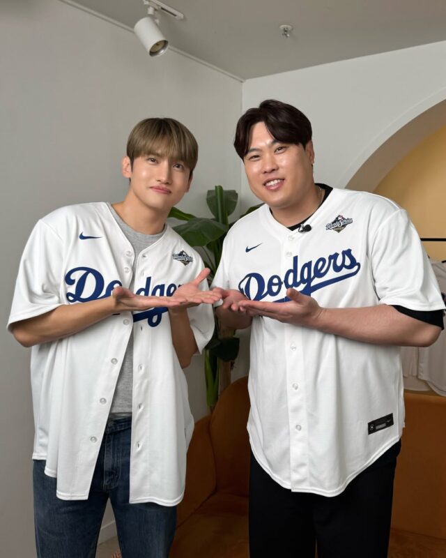 公開された写真には、リュ・ヒョンジン選手と一緒にドジャースのユニフォームを着て、カメラに向かってポーズを取るチャンミンの姿が収められている。