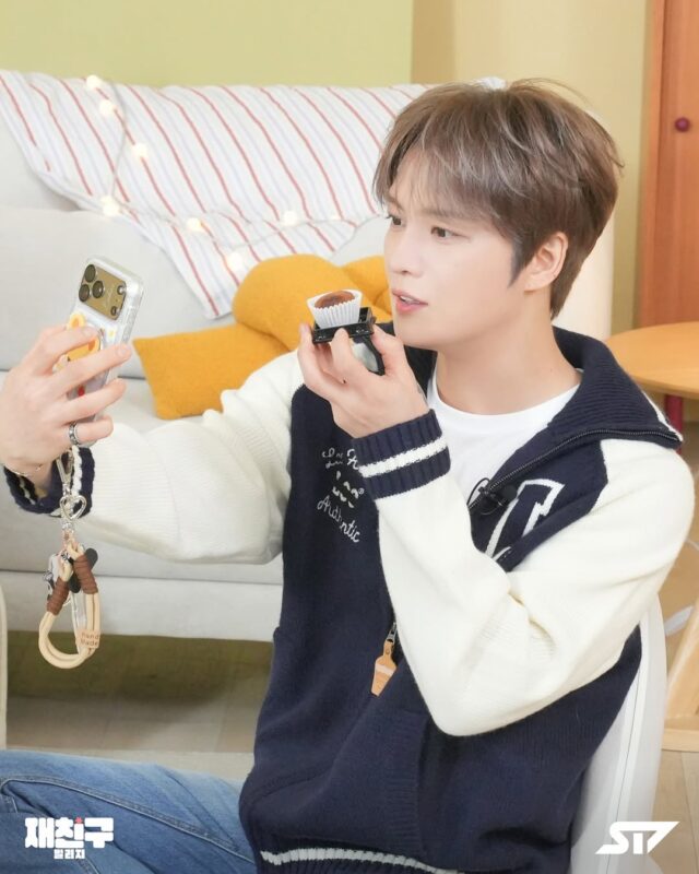 写真には、「ドバイチョンドゥククッキー」を持って自撮りをするジェジュンの姿が収められている。