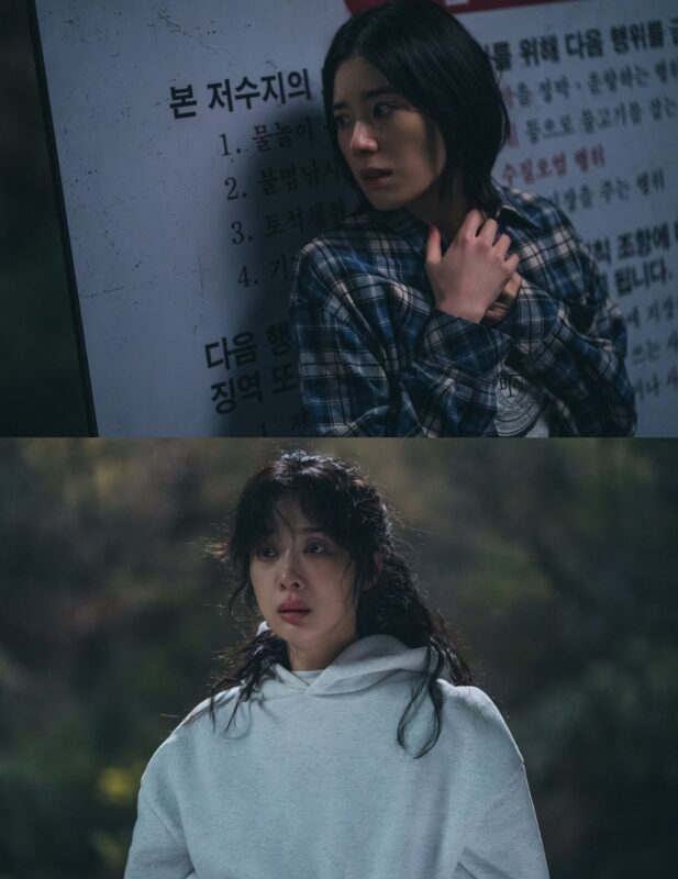 公開されたスチールには、ユン・ラヨン(イ・ナヨン)、カン・シンジェ(チョン・ウンチェ)、ファン・ヒョンジン(イ・チョンア)が、法科大学院の同期だった頃に共に経験した、ある過去の出来事が切り取られている。落ち葉が散らばる地面に力なく倒れ込むユン・ラヨンの姿は、意識を失っているかのようで、不安感を強くあおる。カン・シンジェは息をひそめ、緊張した表情でどこかを見つめ、ファン・ヒョンジンの顔にも恐怖と混乱が浮かんでいる。