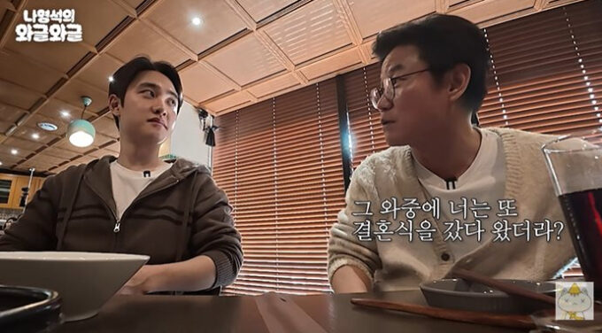 この日、ナ・ヨンソクは「『EXO』は忙しくて、多事多難でありながらも、意義深く、興奮する年末を過ごしたようだ」とし、「その中で君は(キム・ウビンの)結婚式に行ってきたよね」とD.O.に尋ねた。