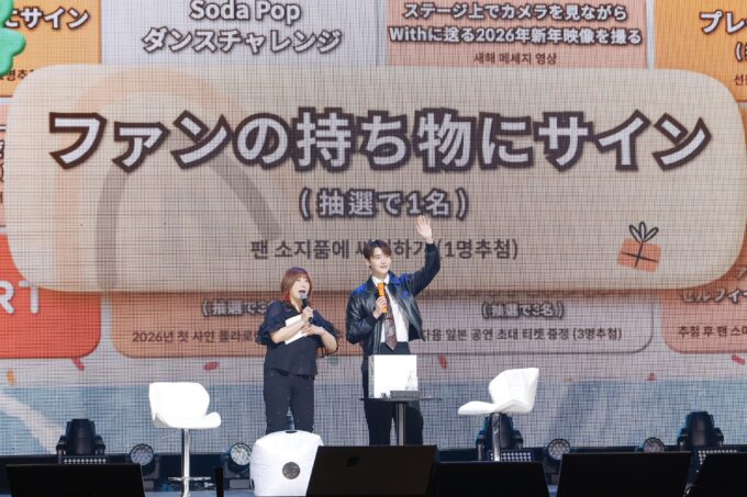 当日会場ロビーに設置されファンたちが願いごとを書いたパネルがステージに運び込まれると、ジョンソクがランダムで選び実際に願いを叶えるコーナーがスタート。ヌナと呼んでほしい、2ショットを撮りたいなどの願いに、ファンと直接会話をしながら願いを叶えた。さらに次のコーナーでもサイコロを振りすごろく形式でファンの願いを叶えることとなり、ファンの持ち物にサインをしたり、新年メッセージを贈る際には撮影可能にしたりと、相変わらずのファンを思いやる気持ちが溢れる時間となった。