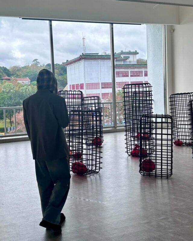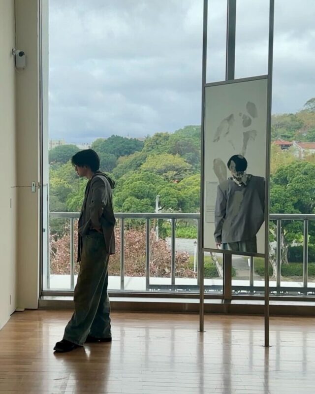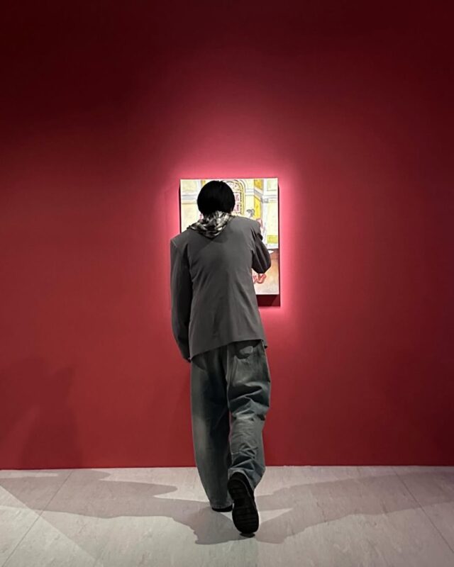 写真には、芸術作品を鑑賞しているフウマの姿が収められている。