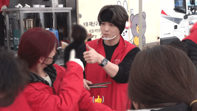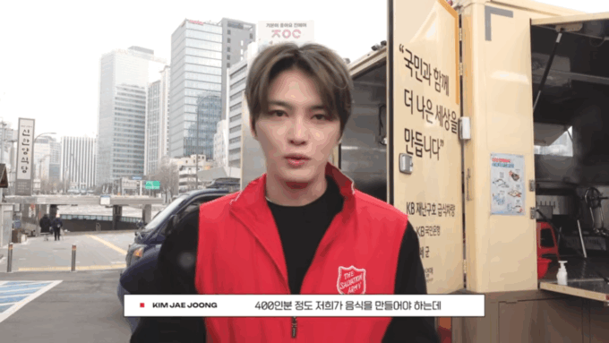 動画でジェジュンは、「ほかのどんなボランティア活動よりも、僕たちの能力を発揮することができる時間です。調理ができる空間があります。400人分ほどの食べ物を僕たちが作ります。あたたかい食べ物や、すぐにお出しできる食べ物を直接調理してリアルタイムで提供するシステムです」と説明した。