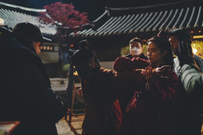 また、壮大な世界を表現するために、韓国トップクラスの美術チームが集結。チェ・ドンフン監督がイメージする宇宙を作り上げていく様も必見だ。車の中に搭載された“飛び出るテクノロジー画面”や、今まで見たことがない“奇抜な宇宙船”のデザインなど、細部に宿る圧倒的な本物志向が見て取れる。 さらに衣装へのこだわりも深く、衣装監督は「高麗末期の服装を徹底的に調査しながらも、映画らしくクールに仕上げた」とコメント。朱色やエメラルドブルーといった鮮やかな装いで演技に挑む役者たちの姿も捉えられており、アンドロイドのガード役を演じたキム・ウビンが「衣装に助けられた」と語る通り、衣装がいかにキャラクター形成に重要だったかが伝わってくる。