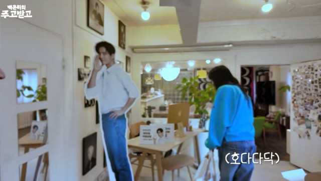 映像の冒頭、イ・ナヨンの登場と共にウォンビンの等身大パネルが視線を集めたが、イ・ナヨンはこれを見つけて驚いた様子で「ペコリ」とお辞儀すると素早く通り過ぎ、笑いを誘った。