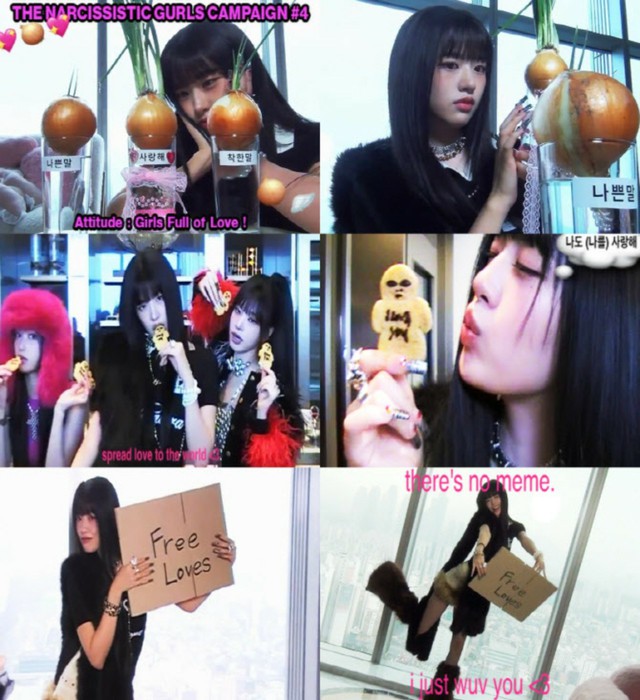 前髪を下ろしたヘアスタイルで登場したアン・ユジンは、玉ねぎ実験を通じてメッセージをユーモアたっぷりに伝えた。優しい言葉をかけるとよく育つという実験で、アン・ユジンは「愛してる」と書かれた玉ねぎにはたっぷり愛情を注ぐ一方、「悪い言葉」を聞かせる玉ねぎには直接的な表現を避け、「あなたのことは愛してない」と表現した。さらに、クッキーを手に「あなたを愛してる」「私も(自分を)愛してる」というフレーズを添え、ラブリーな魅力を加えながら“NARCISSISTIC GURLS CAMPAIGN”を完成させた。