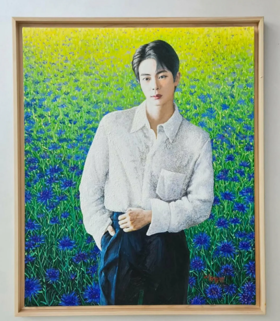 白いシャツを着たJINは、穏やかなまなざしと安定した表情で周囲の風景に自然に溶け込み、一編の叙情詩を連想させます。世界的な影響力を持つミュージシャンJINのイメージを絵画として再構成した今回の人物画は、応援やファン活動の成果を超え、独立した美術作品として完成度と鑑賞価値が認められています。