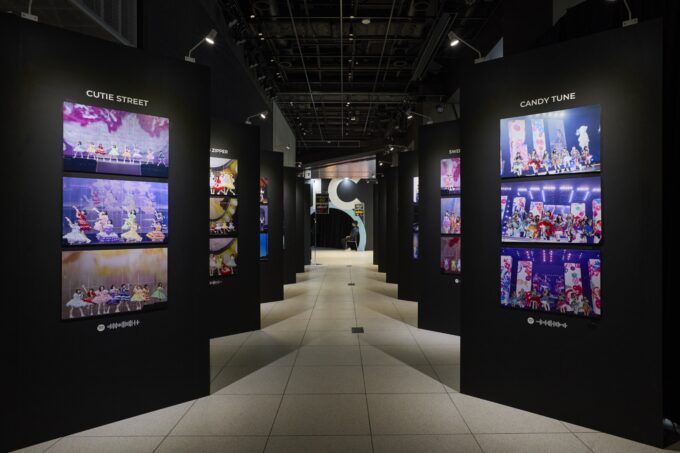 写真展示エリアを通過すると、イベントロゴをあしらった入口から映像展示エリアへと導線を設計し、来場者が段階的に世界観へ没入できる構成としました。