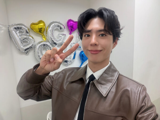 公開された写真には、カメラに向かってポーズを取るパク・ボゴムの姿が写っている。