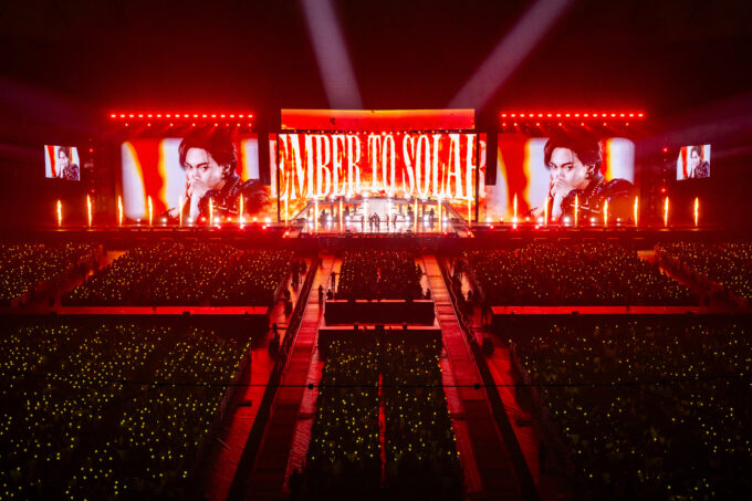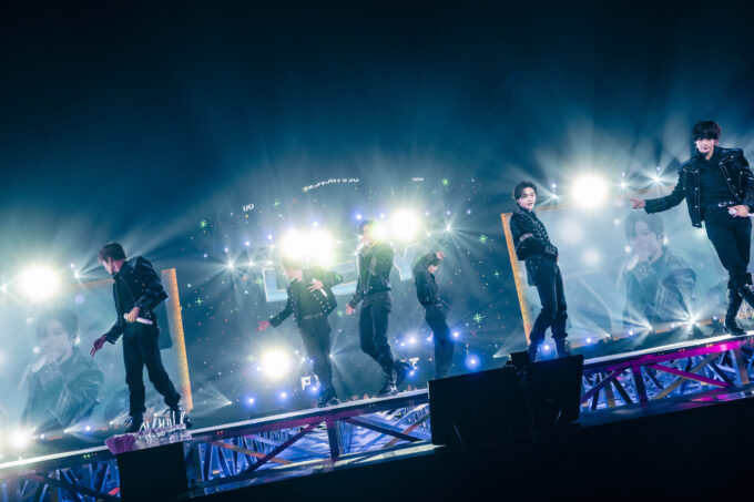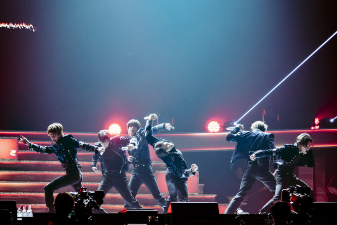 3曲目は「Ember to Solar」。タイトルがビジョンに映し出された途端、大きな歓声が上がり、イントロからメンバー全員の名前を呼ぶBRIIZEのコールがバッチリ決まる。ワールドツアーの一環で、日本ではアリーナツアーとして行われた“[RIIZING LOUD]ツアー”の際は1曲目に据えられ、ライブの導火線として使われていたが、今回はオープニングブロックのピークを創出。ダンスブレイクを入れるアレンジも施され、迫力のパフォーマンスを見せつけた。