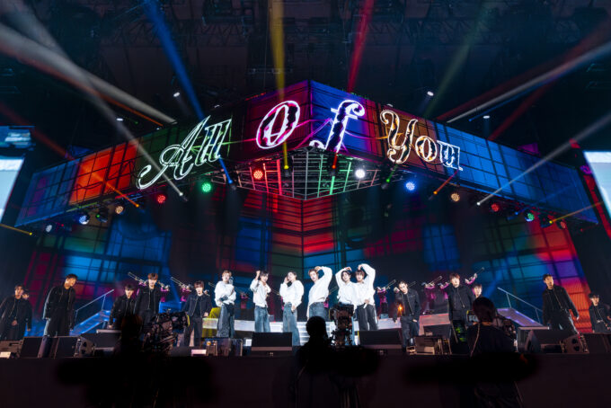メインステージに戻ってきたメンバーが客席を見ると、ひとり一人がもつプラカードで“WE RIIZE”という文字が描き出されているのが目に入る。ソヒは「ありがとう~」と叫び、メンバーはこの光景を収めるために「あと何秒間かだけ掲げておいてもらえたら嬉しいです」(ショウタロウ)とお願いしながら、記念写真を撮影も行う。そして、いよいよ最後の挨拶。メンバーは一人ひとり、この日のライブの感想を語っていく。
