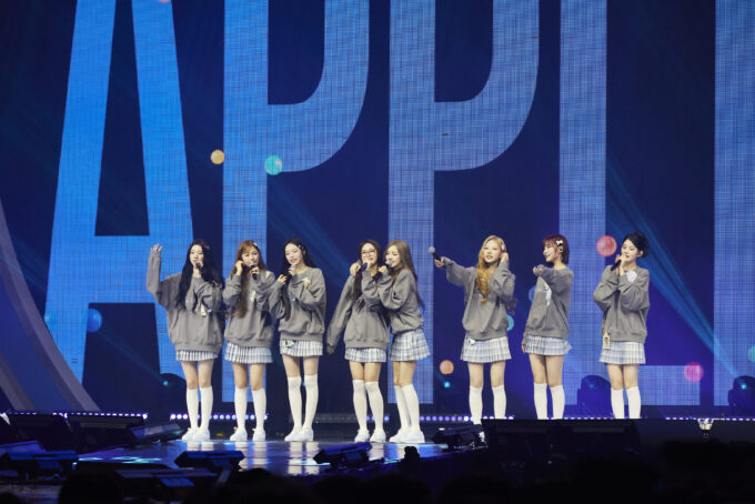 イベントはライブパートからスタート。真っ白な制服風の衣装で登場したジウ、カルメン、ユハ、ステラ、ジューン、エイナ、イアン、イェオンの8人は、1曲目にデビュー曲の「The Chase」を披露。夢に向かって一歩を踏み出す心境を幻想的なサウンドに乗せて表現した楽曲で、彼女たちのはつらつとした魅力が光る。続く、ノスタルジックな雰囲気も漂う「Pretty Please」では、透明感のあるボーカルも聴かせつつ、キュートなダンスでS2Uの視線を奪った。