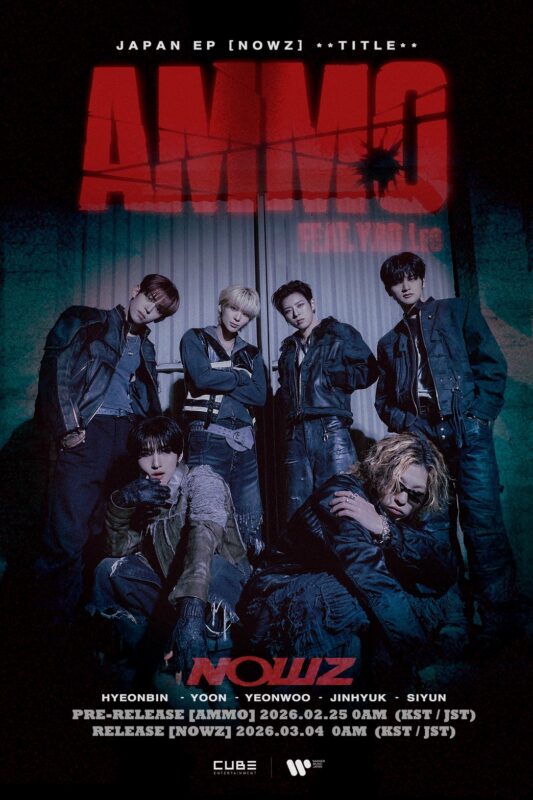 リリースに先駆け、本日2月25日(水)より、日本オリジナル楽曲の「AMMO (feat. YRD Leo)」の先行配信がスタートした。「AMMO(feat. YRD Leo)」は、”K-POP 新世代ルーキー”として風を吹き起こすNOWZの名刺とも言える、攻撃的でドラマティックなヒップホップナンバー。コラボレーションアーティストに「Bye」などのバイラルヒットを始めとし、Z世代から熱い支持を集める注目のラッパー/シンガー “YRD Leo”を客演に迎え、両アーティストのシナジーで魅せる硬派なヒップホップサウンドを体感できる楽曲になっている。