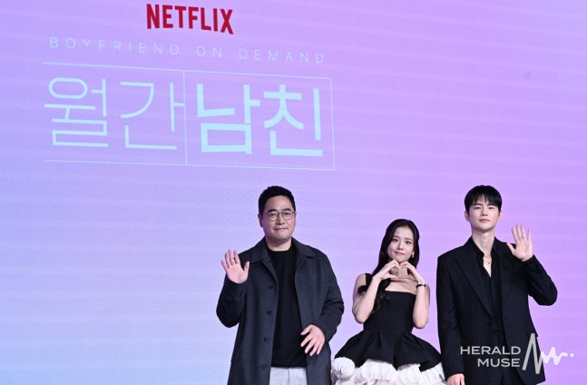 ソ・イングクとJISOOが主演を務める「マンスリー彼氏」は、現実の生活に疲れたウェブトゥーンPD“ミレ”が、仮想恋愛シミュレーションを通じて“彼氏”をサブスクし、恋愛を体験するロマン実現型のロマンティックコメディーだ。
