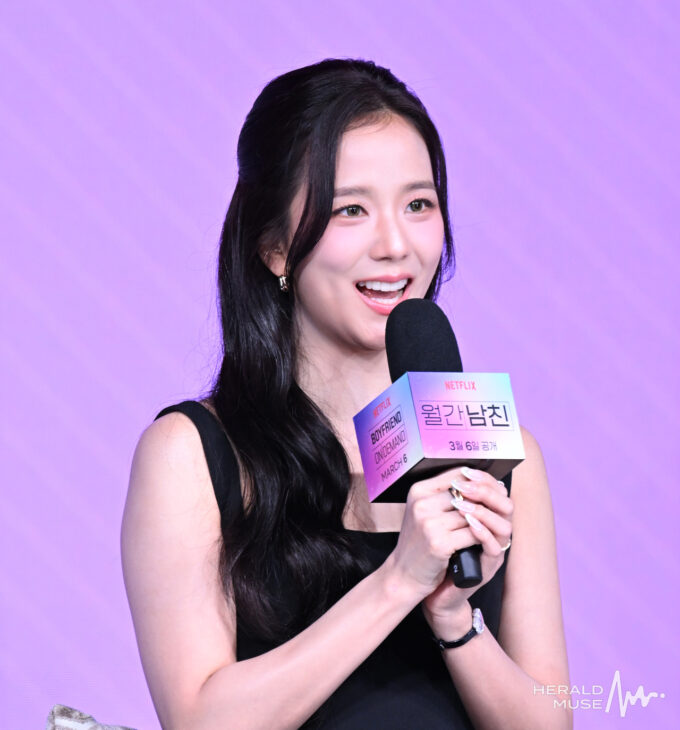 26日午前、ソウル・トンデムン(東大門)のJWマリオット東大門スクエアで、Netflixシリーズ「マンスリー彼氏」の制作発表会が行われた。この日、会場にはJISOO(「BLACKPINK」)、ソ・イングク、キム・ジョンシク監督が出席し、作品について語った。