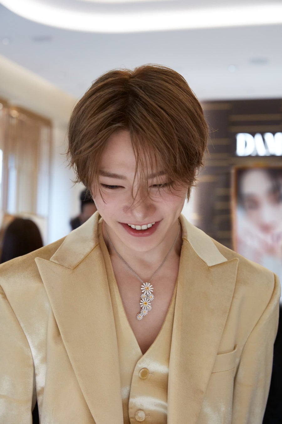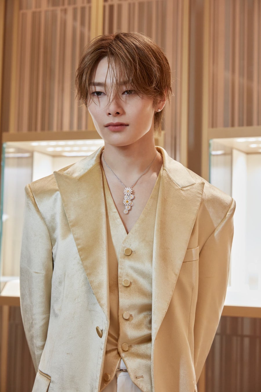 I.Nは、メゾンを代表するアイコニックなコレクションから厳選されたジュエリーを着用。ホワイトゴールドにダイヤモンドとイエローサファイアをあしらったマルゲリータ コレクションのハイジュエリーネックレスをはじめ、洗練されたジュエリーがその存在感を際立たせました。