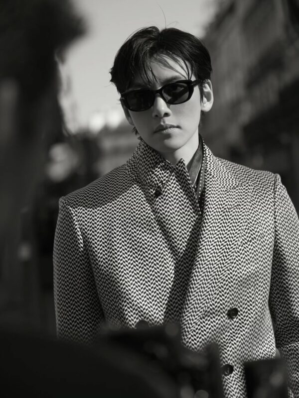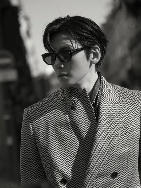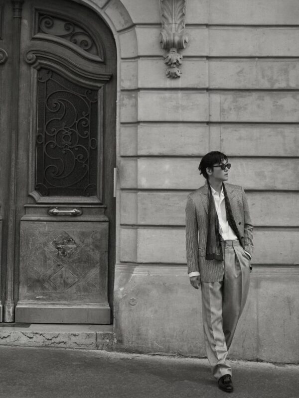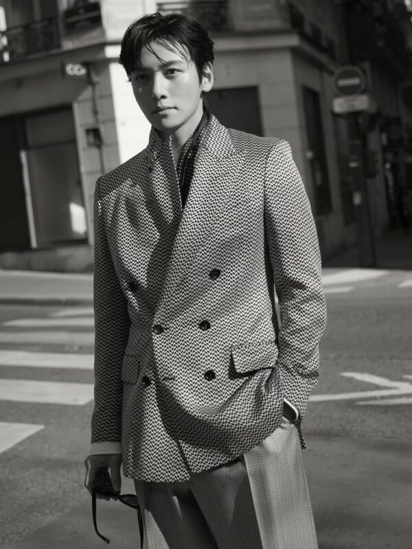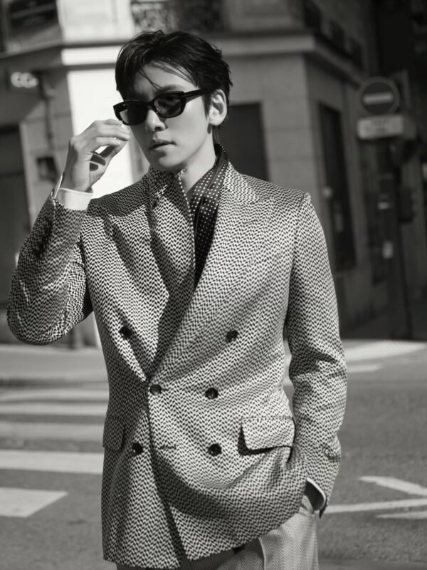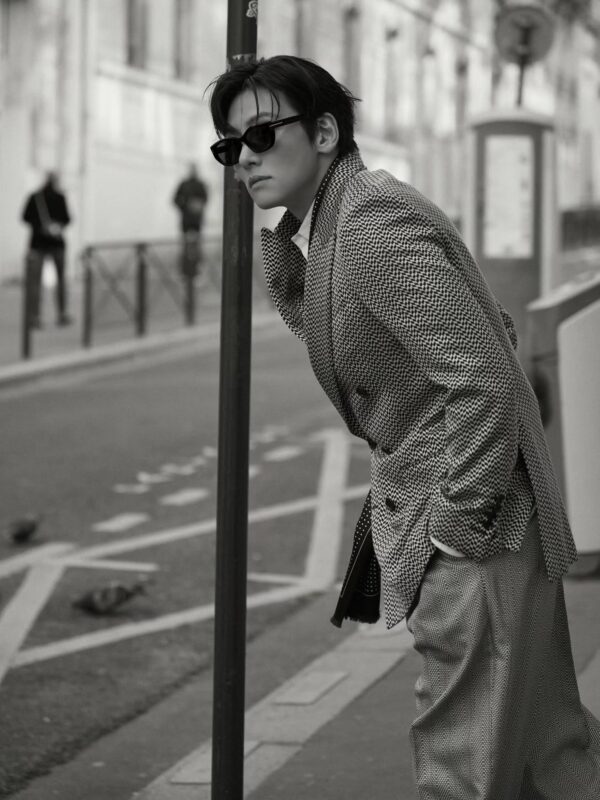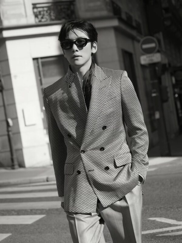 公開された写真には、チ・チャンウクの着崩したスーツスタイルがモノクロ写真で収められている。