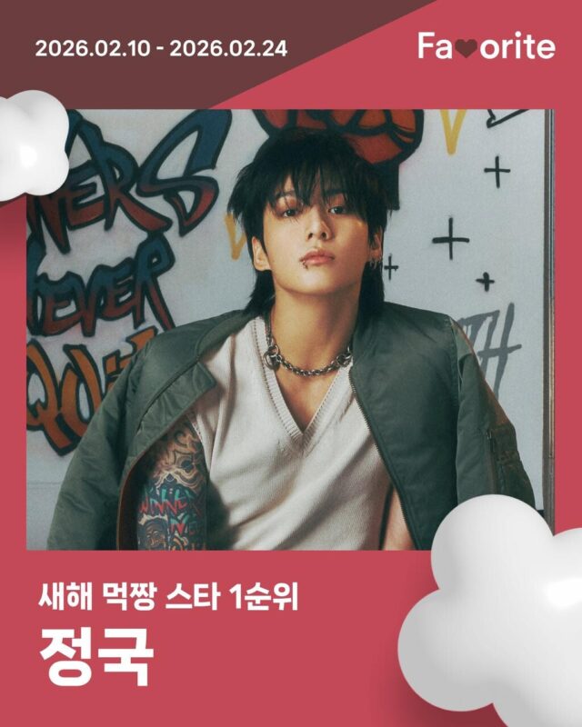 JUNG KOOKは、音源プラットフォームBugsが実施した「新年モクチャンスターは?」投票で55万9347票を獲得し、得票率60.8%で1位を記録した。