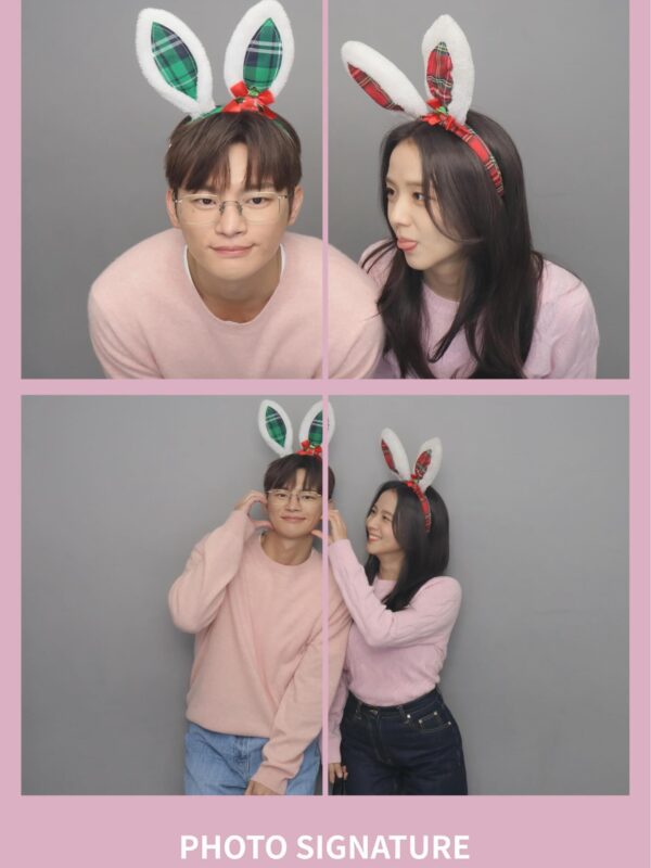 写真と動画には、ピンクのニットを着てウサギの耳のカチューシャをしたソ・イングクとJISOOの姿が収められている。