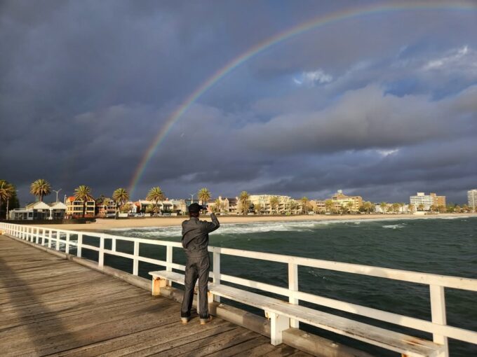 公開された写真の中で、イ・ジョンシンはメルボルンの海岸にある桟橋の上で、虹を背景に両手を大きく広げている。イ・ジョンシンは曇った空にかかった虹を全身で満喫している。特に、モデルのような抜群のスタイルを誇るイ・ジョンシンのビジュアルが、見る人を感嘆させる。