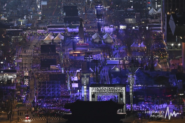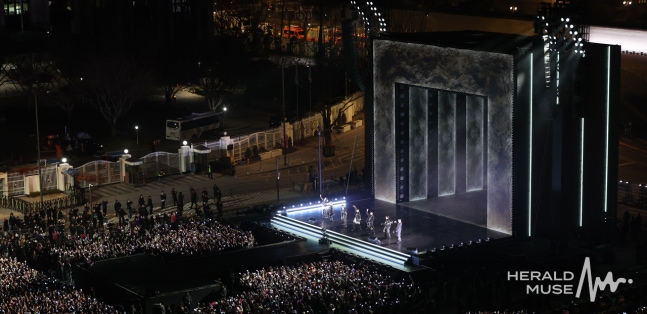 「BTS(防弾少年団)」が21日午後、ソウルのクァンファムン(光化門)広場で5thフルアルバム「ARIRANG」のリリースを記念して開催されたカムバックステージを開催した。「BTS」は午後8時から約1時間にわたり、新曲とヒット曲のステージを披露した。