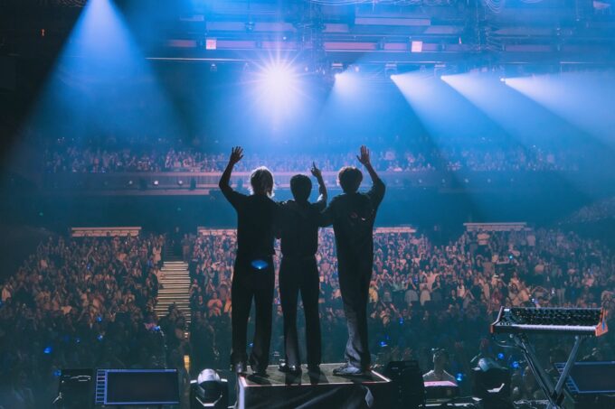 公開された写真には、客席に向かって手を振る3人のメンバーの姿が収められている。