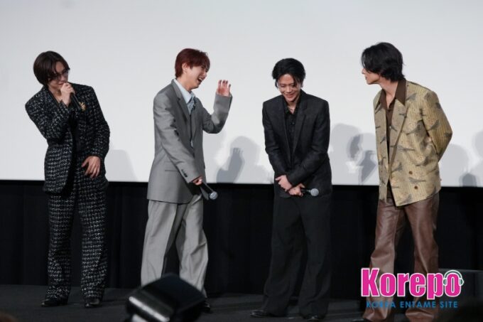 佐野は「画」。映画館での上映を意識した表情作りに触れ、「みんなの表情管理がすごかったので、映画を見たらわかると思うのですが、“映画館で上映される”と想定してパフォーマンスしていた」と明かすと、藤牧から「だから泣いてたのか」とツッコミが入り、会場からも納得の声が上がった。