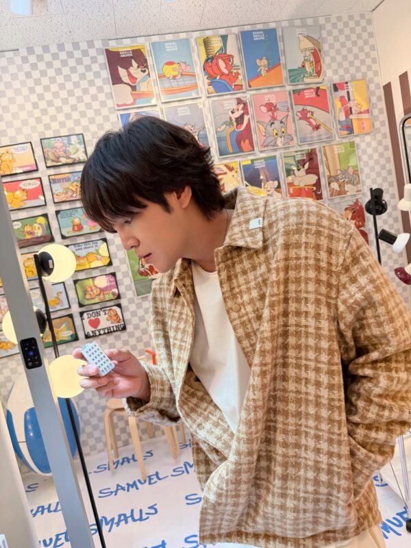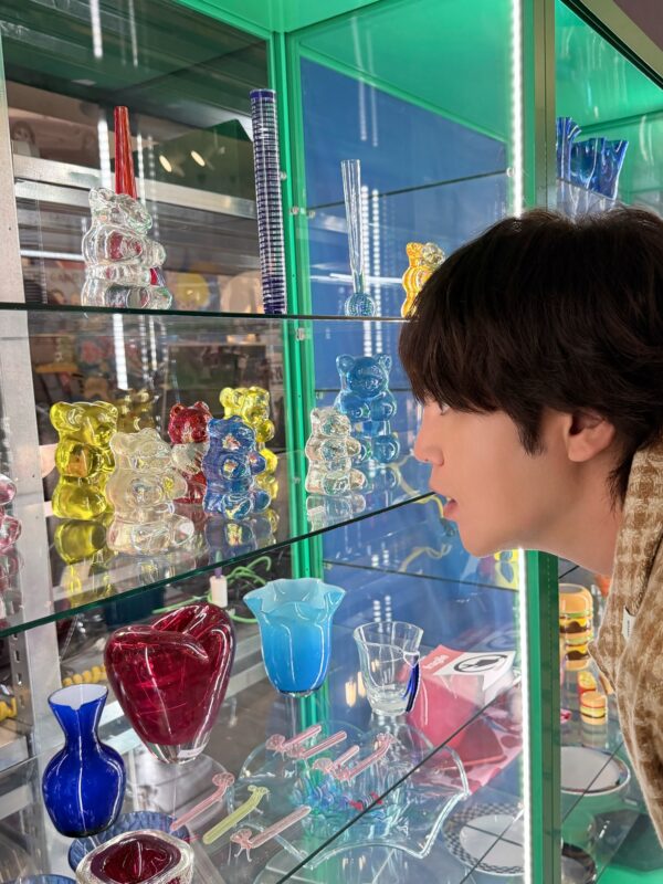 写真には、ソックスやぬいぐるみ、ポスターやガラスの置物などに熱心に見入っているチャン・グンソクの姿が収められている。