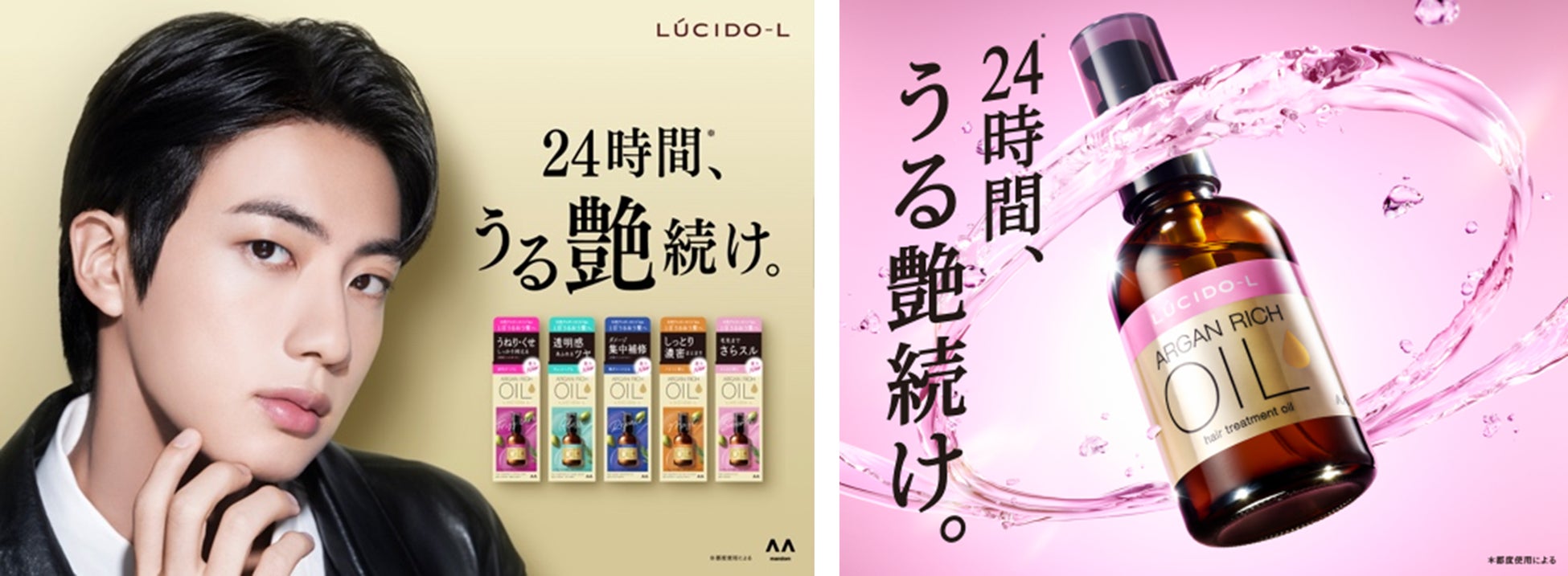グローバルスターとして表現力豊かなパフォーマンスで世界中を魅了しながら、常に自分らしい魅力を発揮し続けるJinさんの姿勢は「あなたらしい髪を自由に楽しむ」というルシードエルの想いとも重なります。さらに、Jinさんが持つ多彩な魅力は、なりたい髪や悩み別に使い分けられる「ルシードエル アルガンリッチオイルシリーズ」のバリエーションの豊かさと相通じるものがあると考え、この度Jinさんの出演が決定いたしました。