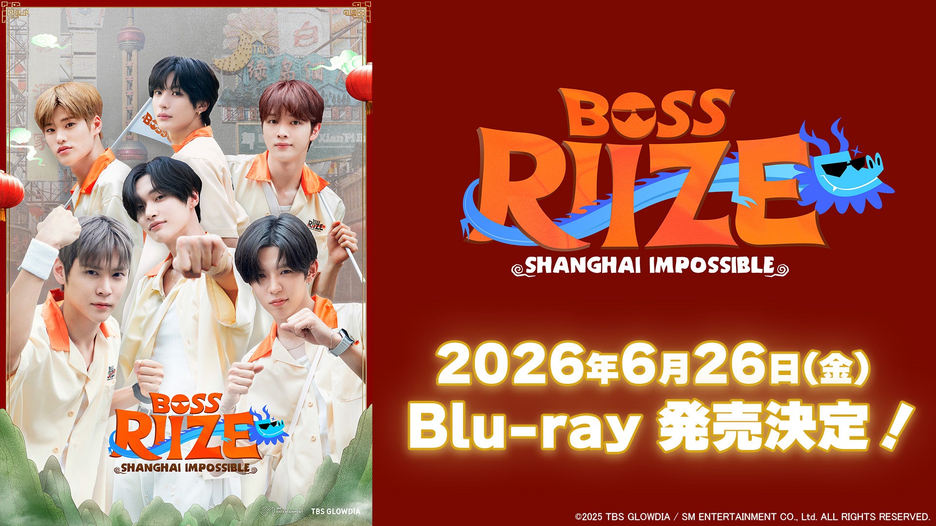 株式会社TBSグロウディアが日本のIPを保有する、世界を舞台に活躍する大人気K-POPボーイズグループRIIZEの単独リアルバラエティ「BOSS RIIZE : SHANGHAI IMPOSSIBLE」のBlu-ray BOXが発売決定しました。