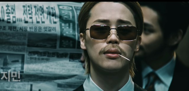 場面が切り替わると、どんでん返しが待っていた。首元まで伸びたロングヘアに、Jiminのスリムなボディラインが映えるぴったりとしたスーツをまとい、ノワール的な雰囲気で一気に視線を独占する。
